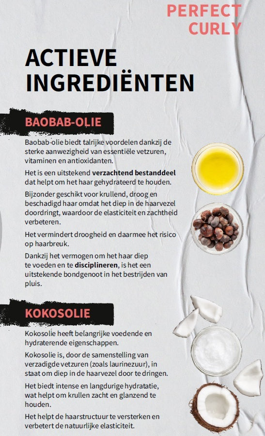 - Zorgt voor zachte, glanzende en veerkrachtige krullen