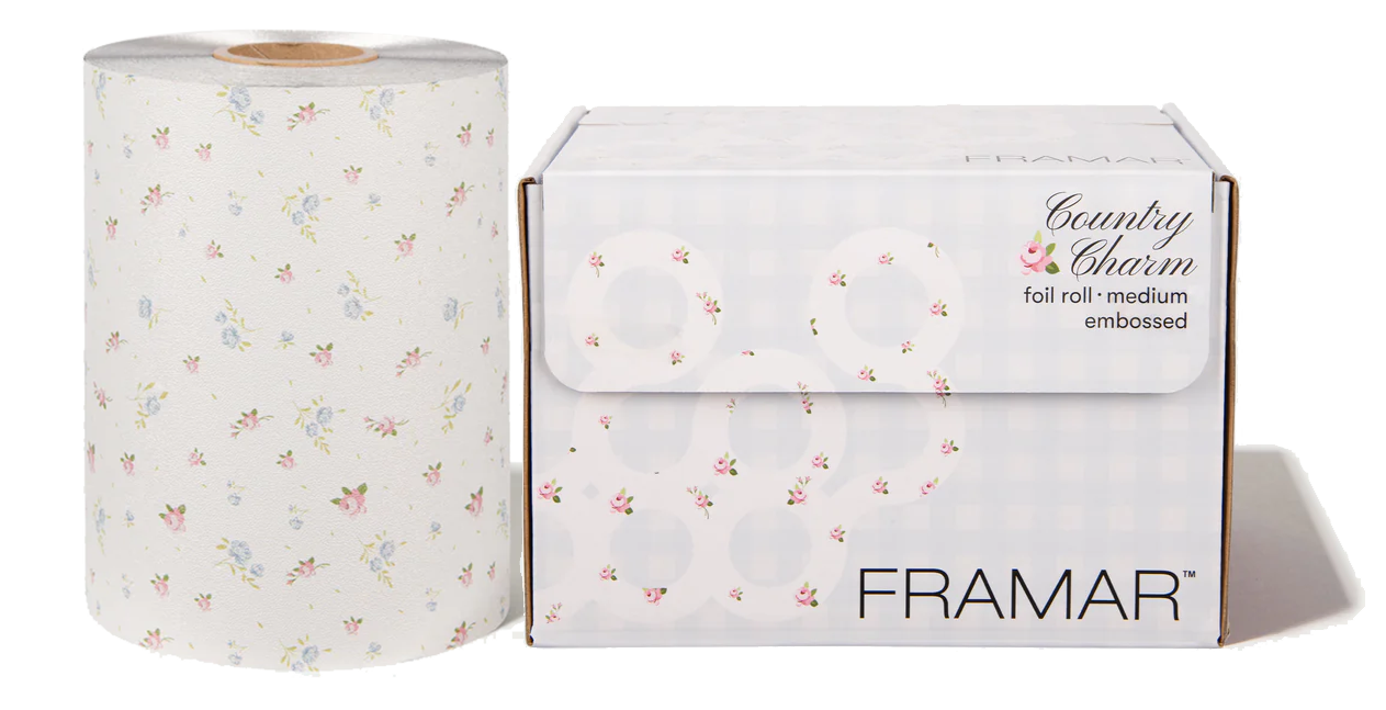 Geef iedere kleurbehandeling een stijlvolle, landelijke uitstraling met de Framar Country Charm Embossed Foil Rol. Deze professionele haarfolie op rol is voorzien van een elegant vintage bloemenpatroon en combineert maximale flexibiliteit met een unieke salonlook.