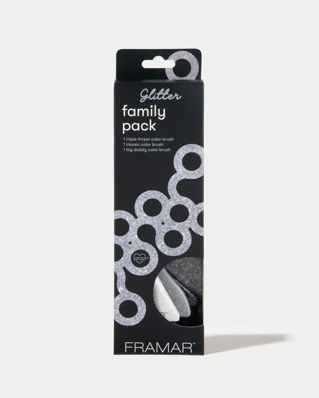 Til je kleurwerk naar een hoger niveau met de Framar Verkwast Glitter Family Pack Pin Tail Brush Set. Deze stijlvolle set bestaat uit drie hoogwaardige kleurborstels – Classic, Big Daddy en Triple Threat – speciaal ontworpen om elke kleurtechniek moeiteloos en precies uit te voeren.